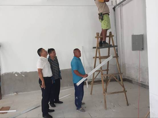 2017年8月25日下午1时起,学院党委副书记徐彤宝到假前学生处立项的几项零小工程的施工现场检查指导工作。学生处处长刘树全,后勤管理处处长赵明陪同参加。