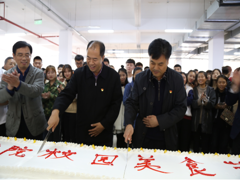 党委书记王喜库、院长曹炳志合切蛋糕为美食节剪彩
