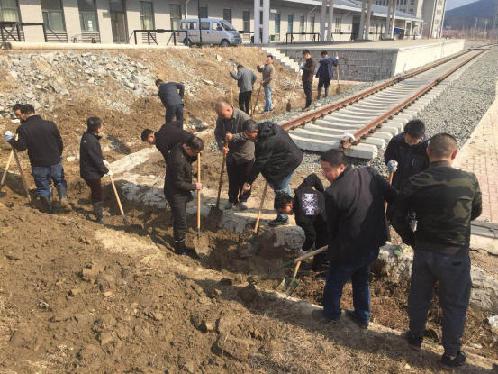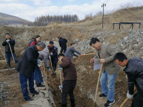 在后勤党总支书记赵明的带领下,后勤党总支全体党员及预备党员不畏脏累,在实训站台北侧用镐头、铁锹清理排水沟,并将残土运走。