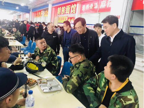 在检查一楼社会化公司——长春中快餐饮公司的过程中,胡越平着重强调了加强食品安全工作的重要性,他指出,食品安全工作直接关系到学校全体师生的身体健康和生命安全,极为重要,要从源头上把好食品安全关,把食品原材料质量放在第一位,坚决把一切不合格的食品原材料及添加剂抵制在门外。胡越平一行检查了餐饮中心二楼的班组档口和民族餐厅,在每个窗口前他们都驻足停留,耐心、详细的询问了饭菜的品种、价格等,对各档口所出售的饭菜、面食等进行了查看,并与正在用餐的同学进行了亲切的交谈,询问对饭菜质量是否满意、价格是否公道、可选性是否足够等问题。