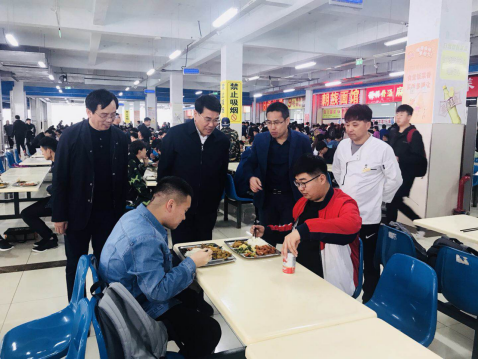 4月22日中午,党委书记胡越平、副校长田雷在后勤管理处相关负责人的陪同下到餐饮中心进行食品安全工作检查。