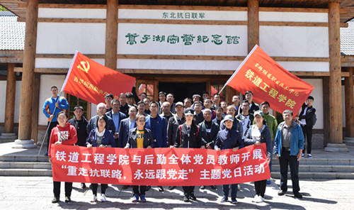 为了深入开展“两学一做”学习教育常态化制度化教育,增强党建工作生机和活力,切实加强党员干部的思想政治素质和党性修养,以“三育人”为服务宗旨,提高基层党支部的战斗堡垒作用,2018年5月6日,后勤党总支、铁道工程学院党总支共40名党员、干部、学生,怀着无比崇敬的心情,来到了蒿子湖密营,接受理想、信念和爱国主义教育。
