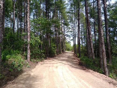 路向前延伸着,终于环通了。试走了这段路,此路面平整,弯路半径适当,依山形地势起伏铺设,原来水流区域均下设导水涵管,继续保持原有汇水路径。