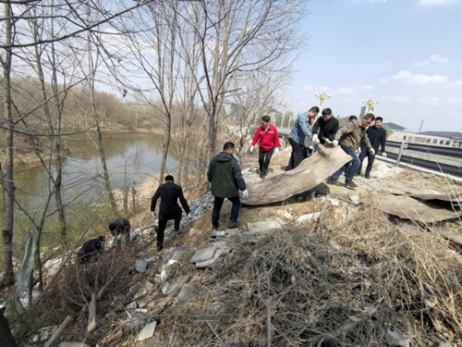 后勤党总支利用党员活动日,号召和组织全体党员和部分群众开展爱国卫生劳动,清理这个垃圾倾倒点。同志们不怕脏、不拍累,在杂草重生、满目垃圾、倾角达到45度的边坡上组成“人墙”,徒手捡拾、传递垃圾,使这个区域得到了基本治理,改善了这一区域的卫生状况。