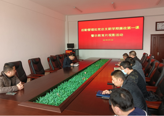 为切实增强总支全体党员的廉洁意识和纪律意识,3月12日,后勤管理处党总支开展新学期“廉政第一课”主题党课,总支全体党员、基建科全体人员参加会议,会议由党总支副书记崔亮主持。