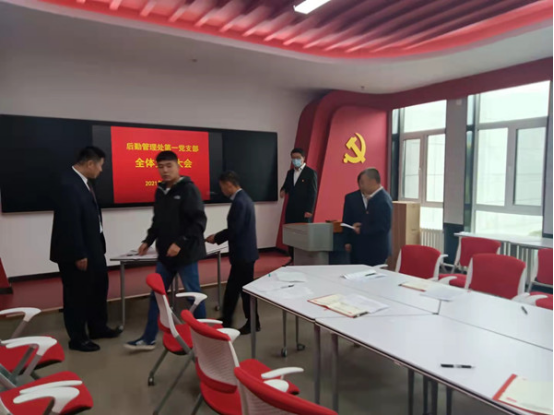 随后,新一届后勤管理处第一党支部委员会召开了第一次全体会议,选举吕刚同志为党支部书记,并对新一届委员进行了分工。