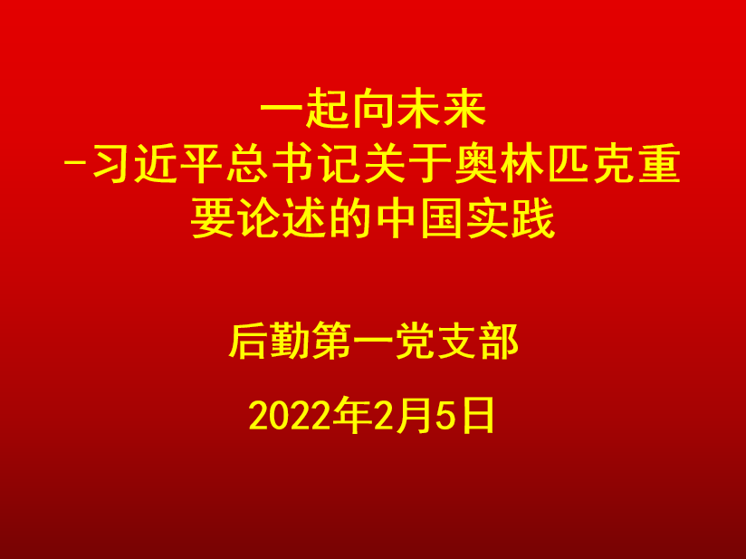 中华大地再次迎来了奥林匹克主火炬点燃的神圣时刻,全世界运动员将相聚在五环旗下,在“更快、更高、更强——更团结”的奥林匹克格言感召下,追求卓越荣耀,展现运动之美。后勤第一党支部在此神圣时刻,认真开展学习习近平总书记关于奥林匹克重要论述的中国实践精神主题党日活动。支部书记吕刚主持活动。